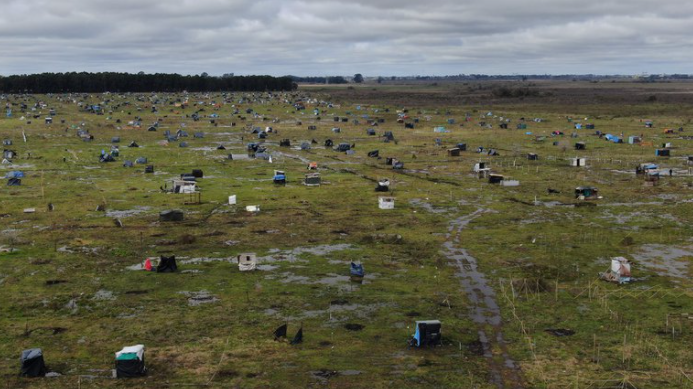 Más de mil personas se instalaron con carpas y chozas en cerca de 100 hectáreas, dividas en dos terrenos. La gente comenzó a instalarse a partir del 20 de julio y poco a poco la zona se pobló con estructuras muy precarias. En total, viven cerca de 2.500 familias.